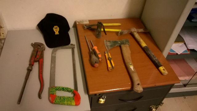 A terra accanto ad entrambi c’erano invece due grosse buste di plastica contenenti delle matasse di fili elettrici e del rame già privato della guaina, circa 80 kg in tutto, nonché numerosi attrezzi, come un’ascia, una piccozza, dei taglierini, le tenaglie e altro materiale utilizzato verosimilmente per asportare il rame. Tutti gli attrezzi rinvenuti sono stati sequestrati.