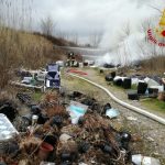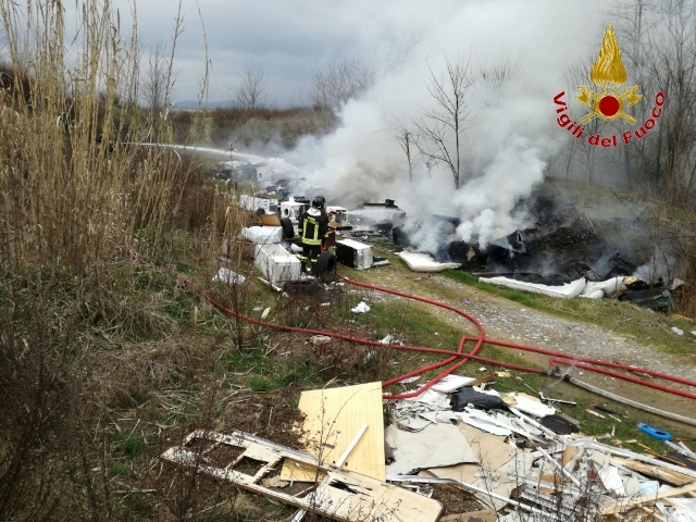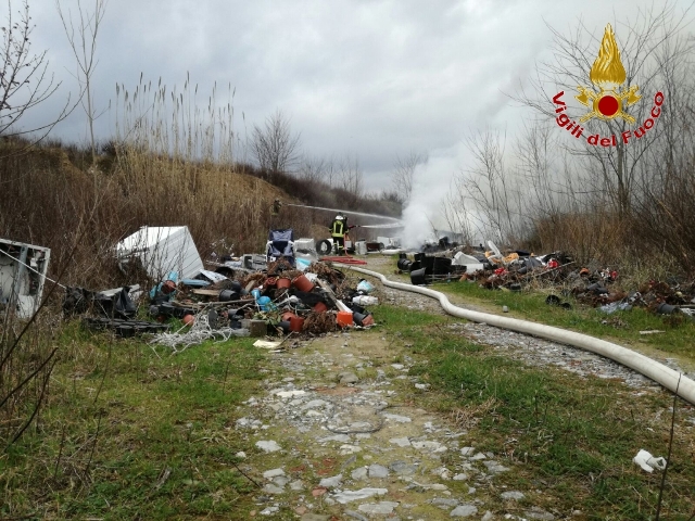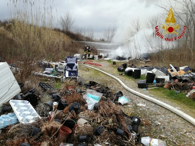A fuoco una vera e propria discarica a cielo aperto, nei pressi dell'ospedale 'San Jacopo' a Pistoia. I vigili del fuoco sono intervenuti nel pomeriggio di oggi, giovedì 23 febbraio, per sedare le fiamme di questi materiali abbandonati all'aperto. Tra le varie cose si possono notare in foto mobili distrutti, elettrodomestici, molti vasi di plastica e addirittura un passeggino.