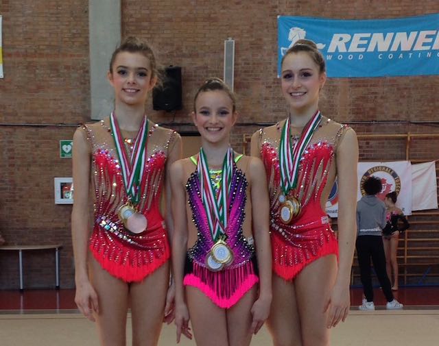 Ancora risultati di prestigio per la Raffaello Motto. Un successo impreziosito da due podi per la società viareggina alla prima prova del campionato regionale individuale specialità Gold (categorie Senior e Junior) di ginnastica ritmica che si è svolto a Ponsacco domenica 19 febbraio. Tra le Senior 1 trionfo assoluto per Chiara Vignolini: 66.000 il punteggio (15,500 al cerchio, 17,850 alla palla, 15,700 alle clavette e 16,950 al nastro). Una vittoria certificata dagli scroscianti applausi del pubblico, estasiato dalla performance della giovane ginnasta della Motto. Tra le Junior 1 secondo posto per Daria Gabbrielli con 50,150 punti all’attivo (11,800 al cerchio, 11,650 alla palla, 14,000 alle clavette, 12,700 al nastro) e terzo per Linda Viani, che ha chiuso la sua esibizione con 49,100 punti (11,400, 13,300, 12,550, 11,850 la sequenza).