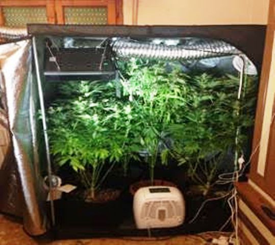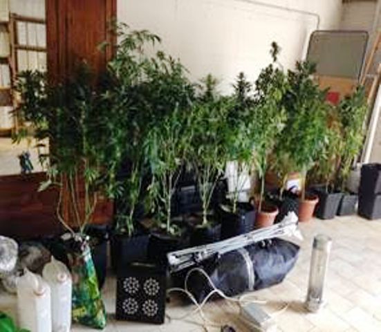 Nella sua casa è stata rinvenuta una piantagione di marijuana composta da dieci piante altre circa 1,80 metri ciascuna e quasi 500 grammi di erba già essicata, oltre a una serra artigianale e materiale per concimare le piane.