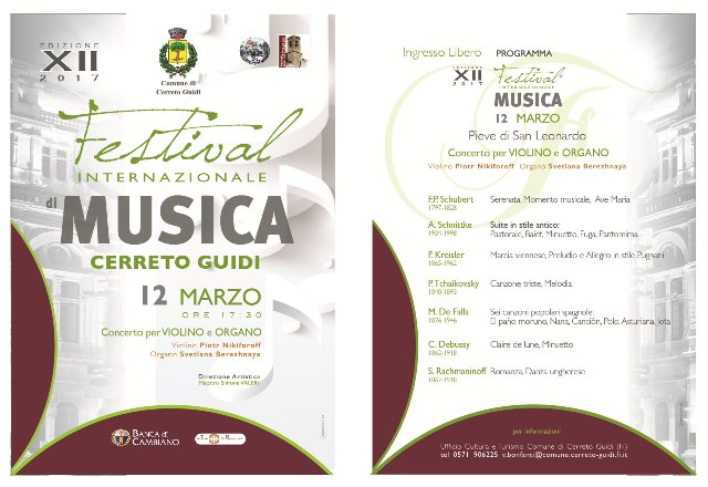 La stagione, affidata alla direzione artistica del maestro Simone Valeri e organizzata dalla Parrocchia di San Leonardo, in collaborazione con il Comune di Cerreto Guidi, proseguirà domenica 12 marzo 2017 alle ore 17.30 nella Pieve di San Leonardo.