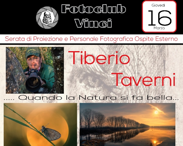 'La Natura si fa Bella...' Si intitola così l'appuntamento di martedì 16 marzo al Foto Club Vinci. L'ospite d'eccezione sarà Tiberio Taverni. L'evento sarà a ingresso gratuito e avrà inizio intorno alle 21.15 al circolo 'Ristori' di Sovigliana, Vinci. Per maggiori informazioni visitare il sito internet www.fotoclubvinci.it o visitare l'apposita pagina Facebook.