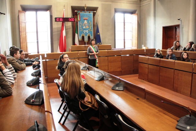 L’assessore Caponi ha illustrato in breve le caratteristiche e le tradizioni della città, la sua storia e come funziona il Governo locale e il Consiglio Comunale.
