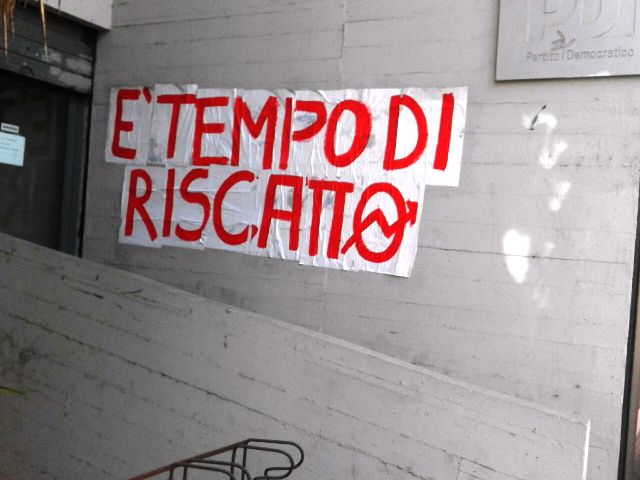 "Il nostro partito è stato vittima di un blitz “antagonista” questa mattina - spiega il segretario provinciale Pd Pisa Massimiliano Sonetti -, da parte di alcuni soggetti incappucciati che hanno incollanto alcuni fogli che componevano uno slogan titolato “E' tempo di riscatto”. Non è la prima volta che accade. A parte il danno materiale provocato al muro della sede, ci teniamo a precisare che prendiamo fermamente le distanze da questo gesto. Come democratici siamo sempre pronti ad ascoltare sulle situazioni di disagio che la crisi si porta dietro. L'impegno del Partito Democratico e del Governo è improntato proprio in questa direzione. Si può anche non essere d'accordo, ma ogni forma di dissenso deve esprimersi civilmente".