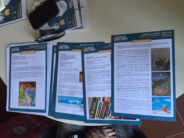 E poi tanti laboratori per bambini e ragazzi, che potranno avvicinarsi ai segreti dei “silent book” (mercoledì 19 aprile, Biblioteca “Vallesiana” di Castelfiorentino), avventurarsi in una “caccia all’immagine” con una vera archeologa e l’illustratrice Celina Elmi (giovedì 20 aprile, Palazzo Pretorio di Certaldo), conoscere meglio il mondo  dei fumetti e dei graphic novel (Biblioteca “Vallesiana”, martedì 18 aprile), scoprire “Pinocchio raccontato per immagini” (Biblioteca “Bruno Ciari”, mercoledì 19 aprile) e infine come nasce un libro illustrato (martedì 18 e venerdì 21 aprile,  Museo BeGo di Castelfiorentino) nell’ambito di “S-Passo al Museo”, campi pasquali.