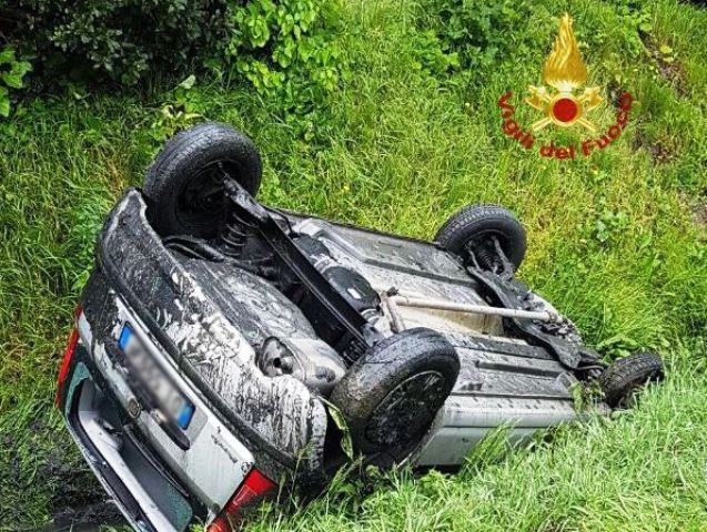 Ha perso il controllo della sua auto per cause ancora da chiarire ribatandosi nel fossato adiacente alla sede stradale. A bordo dell'auto c'erano anche la figlia di due anni. È a ccaduto oggi, giovedì 27 aprile, intorno alle ore 9.45 in località Latignano, nel territorio comunale di Cascina, in via Rotina. Sul posto sono intervenuti i vigili del fuoco del distaccamento di Cascina.