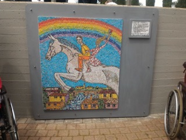 “La fantasia viene rappresentata nell'opera come un grande cavallo bianco sul cui dorso due ragazzi dipingono nel cielo un arcobaleno - spiegano Lami e Vichi - La fantasia è intesa non come una infruttuosa fuga dalla realtà ma come uno strumento efficace per superare i piccoli e grandi ostacoli che la vita ci presenta. L'arcobaleno è un ponte ideale da percorrere ricco di possibilità. L'opera è stata realizzata con la tecnica del mosaico e le tessere sono state create e colorate a mano da tutti i partecipanti del laboratorio, aggiungendo al valore artistico il profondo significato riabilitativo”. Da oggi il mosaico andrà ad abbellire ulteriormente uno dei parchi più belli presenti nel comune di Vinci.