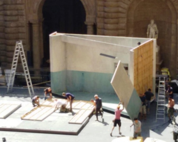 Maggio 2016 : palco di dimensioni limitate, lascia libero l'accesso al Giardino di Boboli (portone sulla destra).
