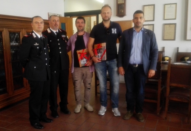 Filippo Rensi e Iuri Signorini sono stati ringraziati pubblicamente dai Carabinieri di Bagnolo nelle settimane successive al fatto. Un ringraziamento che si è rinnovato adesso a Palazzo Comunale nell’incontro (che si è svolto sabato 27 maggio) sollecitato proprio dai Carabinieri di Poggibonsi che hanno sottolineato il coraggio, l’umanità e la bravura dei due valdelsani. Iuri e Filippo hanno ricevuto un libro e il gagliardetto della città.