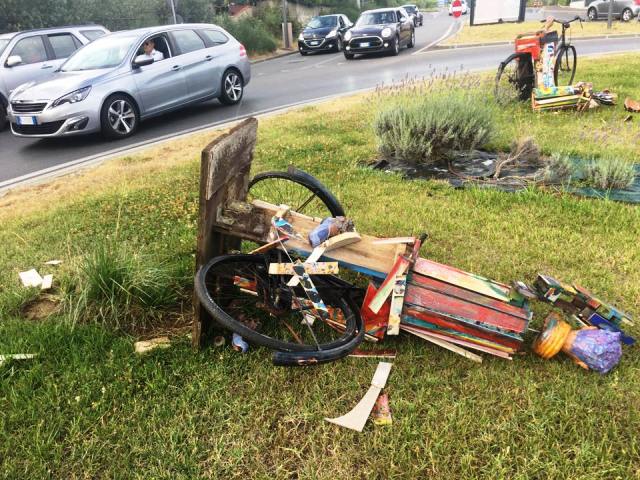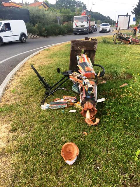 "Un gesto idiota e incivile". È con queste parole che il sindaco di Montelupo Fiorentino, Paolo Masetti, commenta la distruzione delle sei biciclette di Eugenio Taccini installate sulla rotonda fra via Maremmana e la Statale 67 Tosco Romagnola. Una pattuglia dei carabinieri è transitata dalla rotonda intorno alle 5 di mattina senza notare niente di strano, quindi l'atto vandalico sarebbe avvenuto successivamente, nelle prime ore della mattinata.