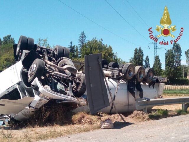 A La Rosa (tra Terricciola e Peccioli) un'autocisterna contenente gpl si è ribaltata fuori dalla sr 439 nella giornata di oggi, lunedì 3 luglio. L'autista è rimasto incastrato nella cabina, per cui è stato necessario l'intervento dei vigili del fuoco del distaccamento di Cascina e poi l'elisoccorso Pegaso per il successivo trasferimento in ospedale.