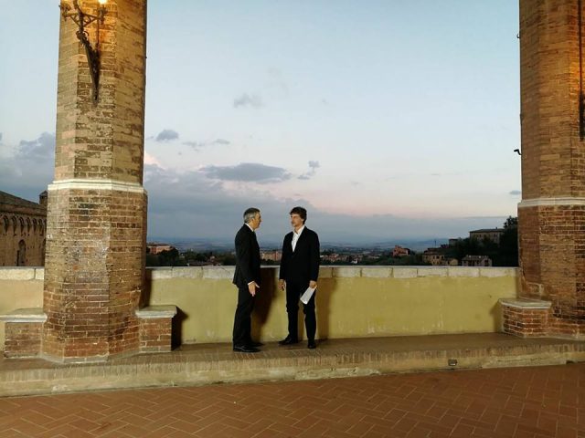 Il conduttore televisivo Alberto Angela si trova a Siena in questi giorni con la troupe della RAI per le riprese di una nuova trasmissione che andrà in onda da gennaio su Rai Uno. La trasmissione si chiamerà “Meraviglie” e sarà dedicata ai siti Unesco presenti sul territorio nazionale. La città di Siena sarà protagonista della prima puntata, in programma per il 4 gennaio sul primo canale della Rai. Il Sindaco Bruno Valentini ha incontrato ieri Alberto Angela a Palazzo Pubblico, dove la troupe stava girando alcune scene, per dargli il benvenuto e conoscere i dettagli del progetto. Le riprese sono state autorizzate dall'Amministrazione Comunale.