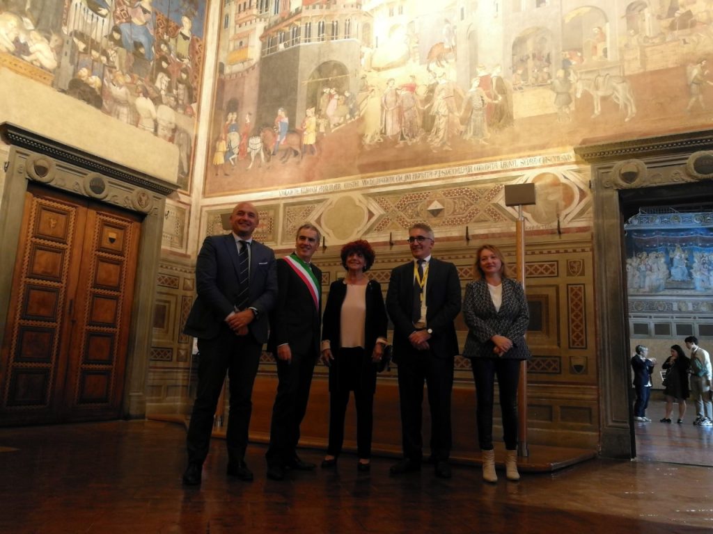 Il Sindaco Valentini ha incontrato ieri la Ministra dell'Istruzione, dell’Università e della Ricerca Valeria Fedeli, a Siena per partecipare al Millenial Fest 2017 – Siena Food Innovation. Durante la sua permanenza a Siena, la Ministra ha partecipato al Food Hackathon Show, al quale hanno partecipato studenti da tutto il territorio nazionale, e poi ha visitato il Museo Civico, accompagnata dal Sindaco. La Ministra ha voluto conoscere da vicino le bellezze di Palazzo Pubblico, in particolare gli Affreschi del Buono e Cattivo Governo di Ambrogio Lorenzetti, al centro anche della due giorni dedicata al cibo, ma non solo, organizzata da Università di Siena, Comune di Siena, MIUR, Santa Chiara Lab, Fondazione PRIMA e Camera di Commercio di Siena, che ha riscontrato un grande successo di partecipazione.