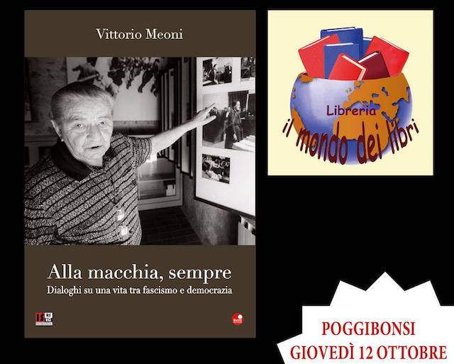 Giovedì 12 ottobre alle 18 presso la libreria Il Mondo dei Libri si svolgerà la presentazione di “Alla macchia, sempre. Dialogo su una vita tra fascismo e democrazia”, l’ultimo libro scritto dal partigiano Vittorio Meoni.