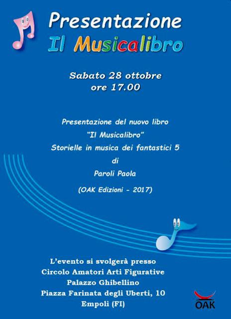 Al Circolo Arti Figurative in Piazza dei Leoni ad Empoli, sabato 28 ottobre alle 17,00, verrà anche presentato “Il musicalibro” dell’empolese Paola Paroli (OAK Edizioni).