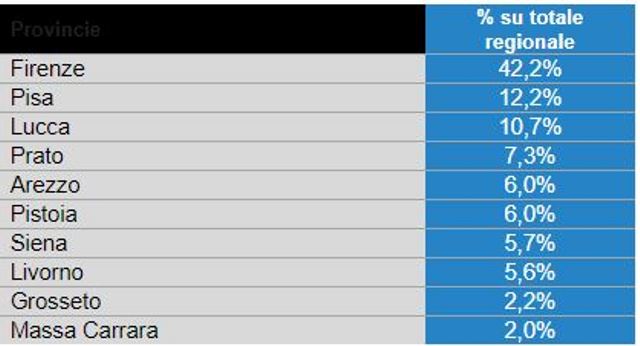 Tra le province più attive, Firenze si conferma nel primo semestre 2017 capofila regionale, arrivando a rappresentare il 42,2% dell’intera offerta di lavoro e con un aumento delle posizioni aperte del 7,6% rispetto al 2016. Al secondo posto Pisa, con il 12,2% dell’offerta complessiva, seguita da Lucca con il 10,7% del totale. Entrambe le province sono cresciute del 30% rispetto allo stesso periodo dell’anno precedente. Seguono quindi Prato (7,3%) e Arezzo (6%).