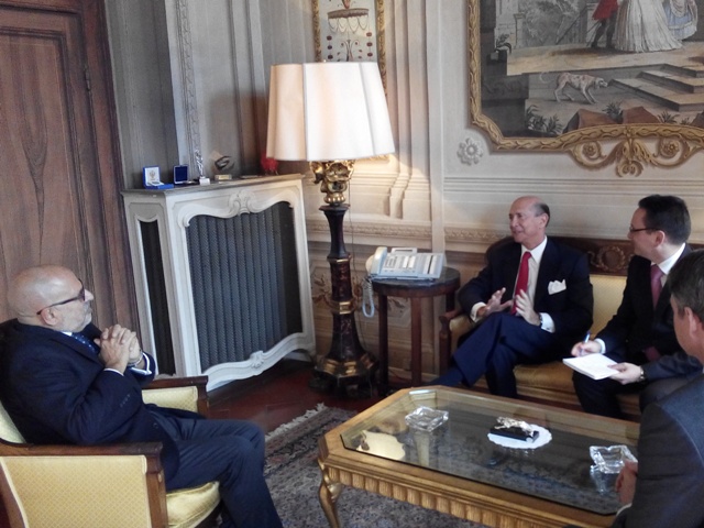 Il prefetto Alessio Giuffrida ha ricevuto oggi a Palazzo Medici Riccardi il nuovo ambasciatore degli Stati Uniti d’America in Italia, Lewis M. Eisenberg. Il diplomatico, per la prima volta nella nostra città in visita ufficiale (ha assunto l’incarico a Roma lo scorso primo ottobre), era accompagnato dal console generale a Firenze, Benjamin V. Wohlauer. E’ stato un incontro cordiale, durante il quale si è parlato di numerosi argomenti, in particolare di sicurezza, immigrazione e studenti americani a Firenze.