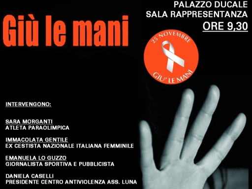 Giù le mani è il titolo dato alla doppia iniziativa in programma sabato 25 novembre a Palazzo Ducale nell'ambito dell'articolato programma del Fiocco Bianco 2017, la giornata internazionale istituita per sensibilizzare l'opinione pubblica sulla lotta alla violenza nei confronti delle donne.